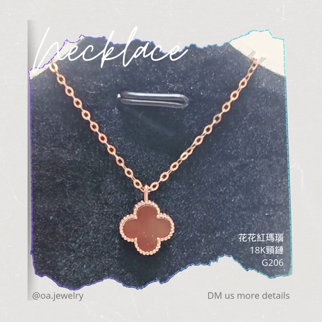 18K紅瑪瑙花花頸鏈(一圖一物) ⚠️注意事項 ✅ 產品圖片為手機實拍,實物顏色可能會略有差異,以實物為準。 ✅ 尺寸為人工量度,可能會有輕微差異。 ✅ 天然寶石獨一無二,每一件都有其獨特的特色。 ✅ 天然寶石如有包裹體、紋理、礦物或微小瑕疵等,均屬正常現象,不影響美觀和質量。 ✅ 此商品不接受退換貨,完美主義者請謹慎選購。